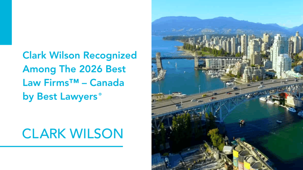 Clark Wilson LLP is proud to be recognized among The 2026 Best Law Firms™ – Canada, a distinction that highlights the firm’s commitment to excellence, integrity, and client-focused service.