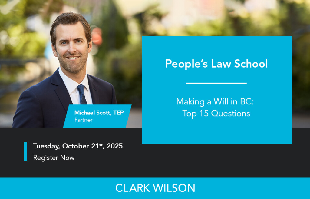If you would like events (like this one), articles, and news on all things estates, wills and trusts law in BC delivered directly to your inbox, subscribe to our complimentary “Your Estate Matters” newsletter.