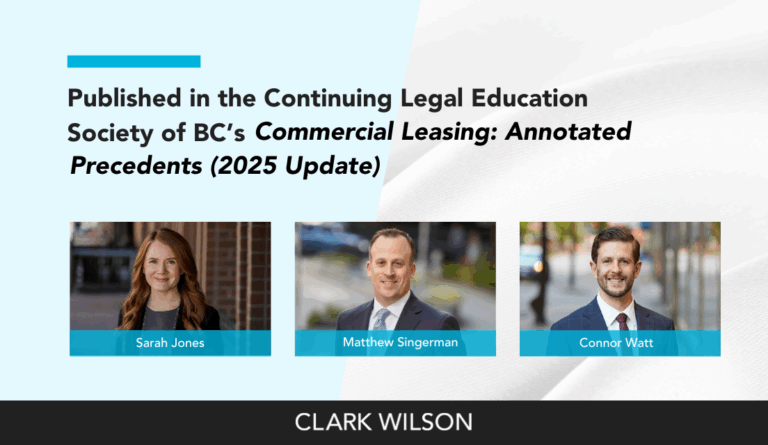 Sarah Jones, Matthew Singerman and Connor Watt Published in CLEBC’s Commercial Leasing: Annotated Precedents 2025 Update